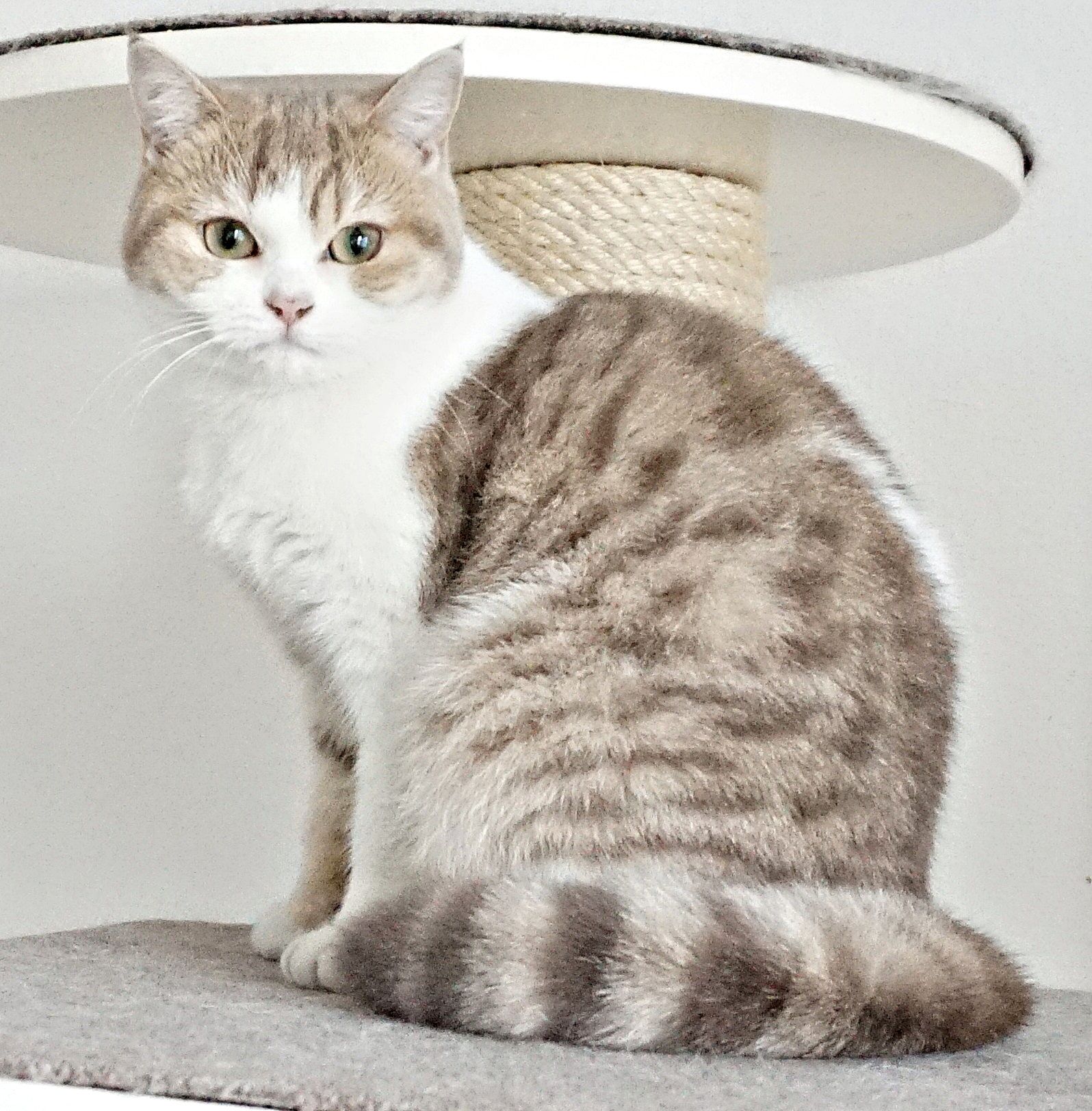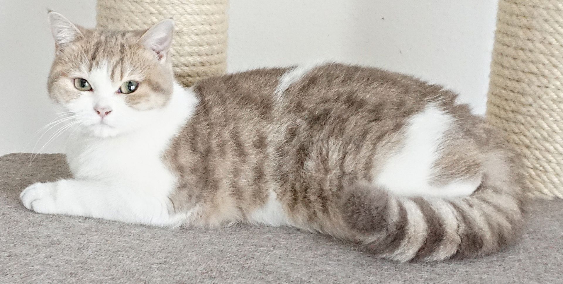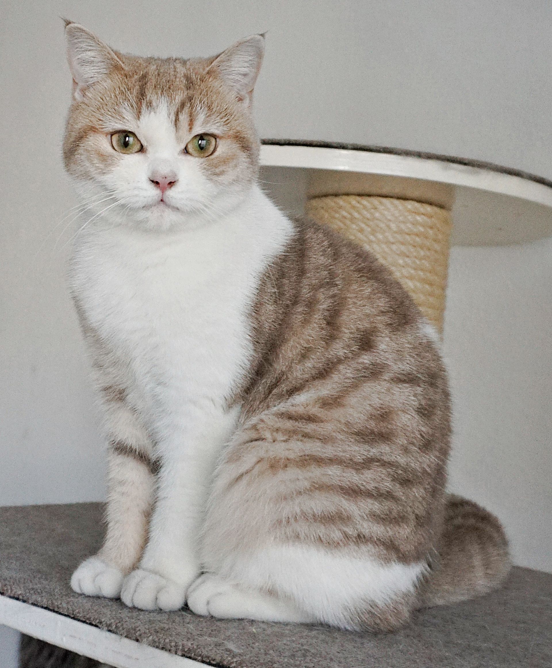 Daisy ist ein BKH-Mädchen in der seltenen Farbe lilac golden tabby spotted white und
